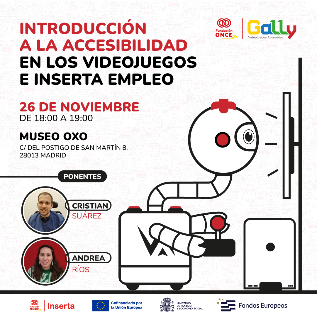 El próximo 26 de noviembre, de 18:00 a 19:00, en OXO Museo (Madrid) tendrá lugar el encuentro: “Introducción a la Accesibilidad en los Videojuegos e Inserta Empleo”, una sesión pensada para reflexionar sobre cómo hacer del videojuego un espacio realmente inclusivo.